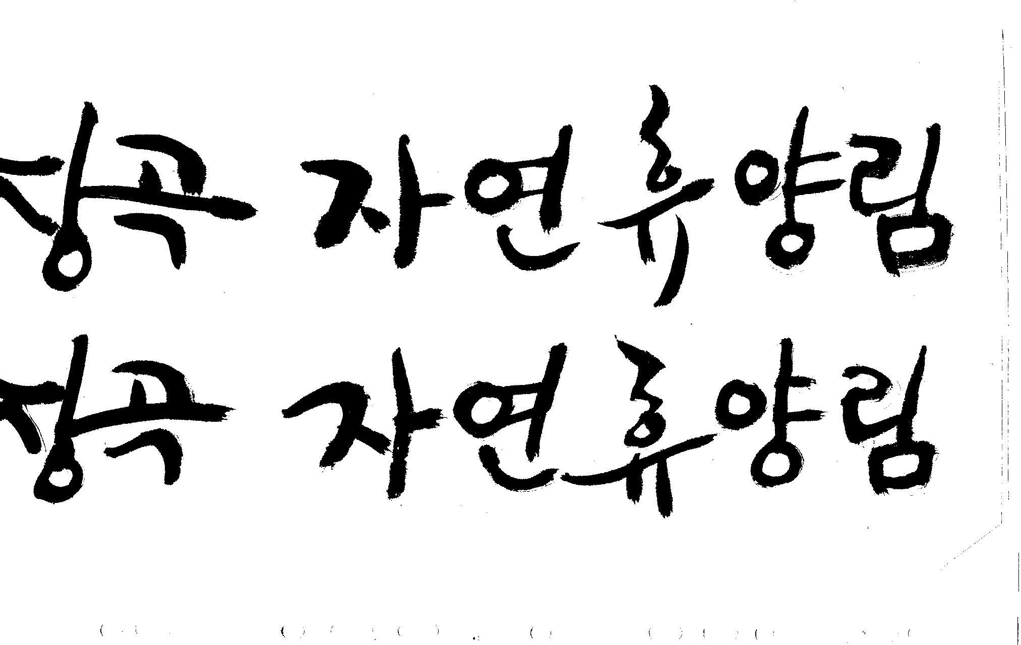 캘리 부탁드려요~ 김철호 일반 1 9521 2008.12.25 23:24 > > 홈페이지 시안 작업중인데. > 메인으로 들어가는 폰트를 명조체로 넣었는데 좀 딱딱한 느낌이 들어 > 캘리로 쓰면 느낌이 좋을것 같아서 부탁드리게 됐습니다. > [장곡 자연휴양림] 이구요. > 홈페이지 시안으로 채택되면 결과물 보여드릴께요^^ > 추운겨울 감기 조심하시고 > 즐거운 크리스마스 되세요! > 감사합니다.. 유용하게 쓰시길... 글자수가 많아서 스캔이 잘렸네요.. 헷갈려서 중복되게 올라간것이 있을것인데.. 맞춰서 편집하세요..